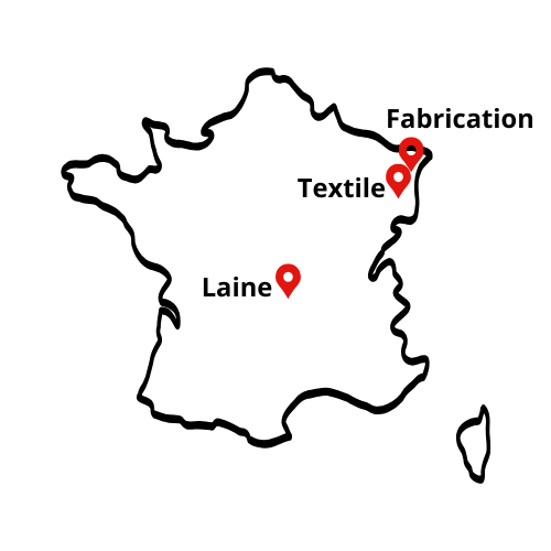 Notre laine provient directement d’Auvergne, notre textile est tissé à Thann, et la fabrication est entièrement réalisée dans notre atelier à Colmar.